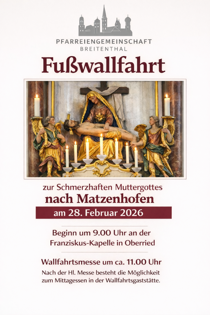 Herzliche Einladung zur Fußwallfahrt zur Schmerzhaften Muttergottes nach Matzenhofen am Samstag, 28. Februar 2026!