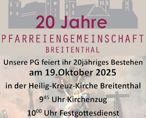 Um dieses Jubiläum gebührend zu begehen, feiern wir am Sonntag, 19. Oktober 2025 um 10.00 Uhr einen gemeinsamen Festgottesdienst in der Heilig-Kreuz-Kirche in Breitenthal. Wir…
